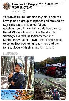 Nice Asian Client who joined my trekking tour to Mt.Fuji kindly gave it me. "My wife and I climbed Mt. Fuji in August 2018 with Mr. Koji Takahashi who guided us on the 2-day hike to see sunrise from the top of Mt. Fuji. Koji-san was very friendly and professional. He explained everything well and made sure we had a safe and enjoyable hike. We had an amazing climbing experience and our guide, Koji-san, played a big part in making it a fulfilling experience.