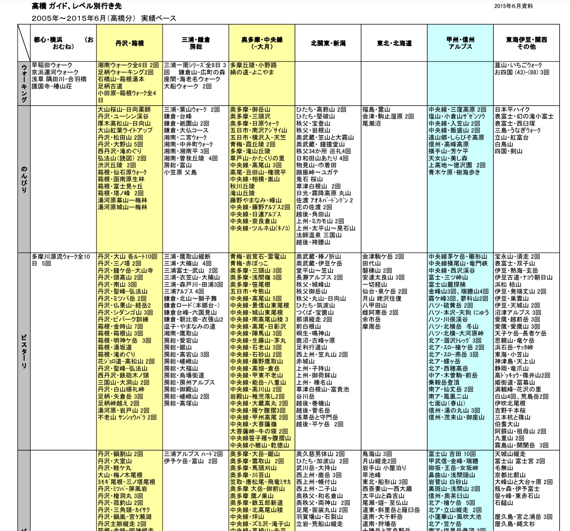 山歩塾のみならず、個人ガイド、ツアーガイド、山岳ガイド協会、雑誌社さんイベントなどでご案内しましたたガイド実績・履歴について、エリア・強度別に一覧になれます(PDFファイル・パスワードなし)。