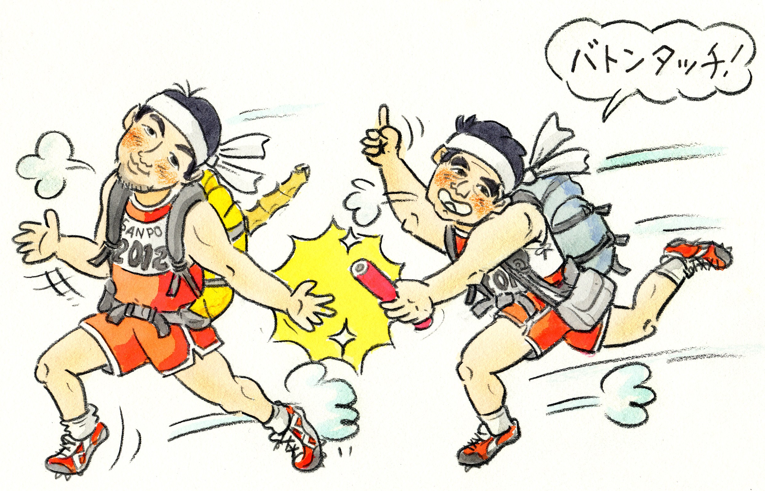 自分の講座のほか、太田さんのサブで甲斐駒ケ岳や赤岳、歩き遍路(下の写真)にご一緒させていただきました。私は太田さんのユニークセンスの一大ファンです。